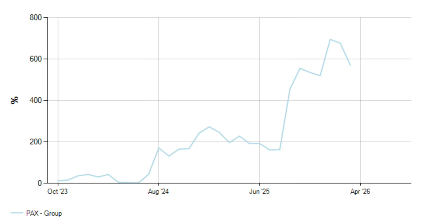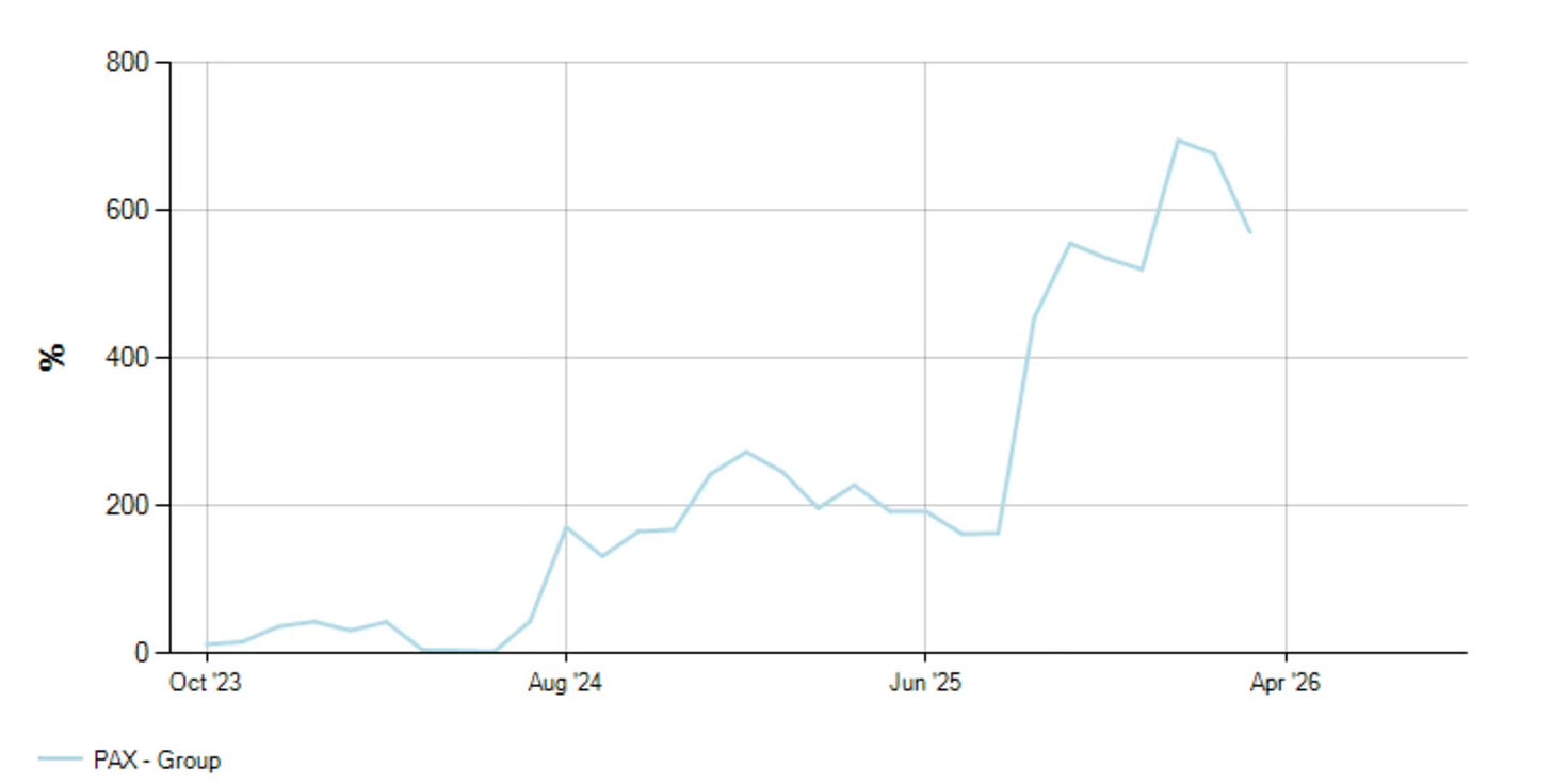 Another Invitation to the Pain TradeBack to the Gut CheckBack of the Napkin BiosApr 02, 2026∙ PaidSharePAX – Group | Portfolio Update (Chart: Cumulative Return Oct ‘23 – Mar ‘26)Cumulative = +571.38% | YTD = +8.1% | 52-Week = +125.46%This post is for subscribers in the Conviction Member planUpgrade to Conviction MemberAlready in the Conviction Member plan? Sign in